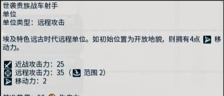 ③UU(世袭贵族战车射手)埃及特色远古时代远程单位。如初始位置为开放地貌,则拥有4点移动力。