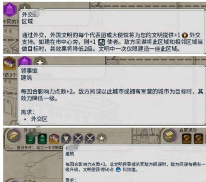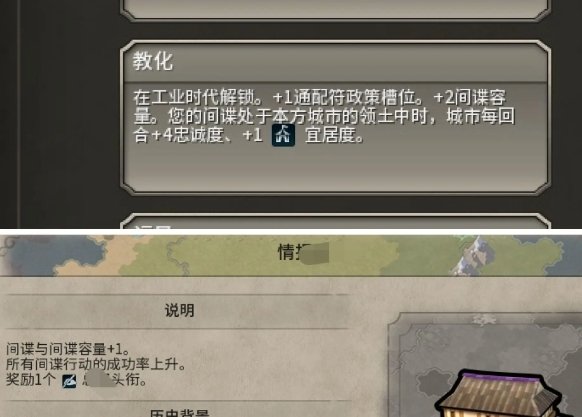 (2)赋予整个文明该类区域反间谍+1等级效果,周围一圈额外+1
