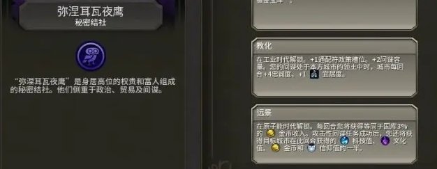 前面的的是能增加间谍容量的市政/科技,后面的是秘密结社:夜莺,最后是二级市政建筑可选建筑之一:情报局,如果要让武则天走更多间谍容量的路线,然后选上面结社/市政建筑即可