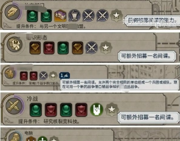 (2)间谍自带升级/加外交能见度vs间谍成功率上升/获取科技文化