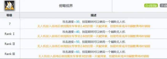 专精建议:专三收益高,但挂机体验一般,容易被其他干员替代,通常不推荐专精,止颂真爱玩家可以酌情考虑专三。