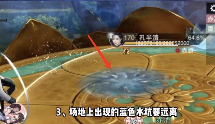 地上出现的蓝色水坑要远离,boss碰到会回血,玩家碰到会掉血;