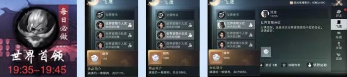 个人奖100+银两/份,小队奖1600-1900银两/份,每样最多可获得三个;竞拍分红浮动大,道具好的时候能上万。