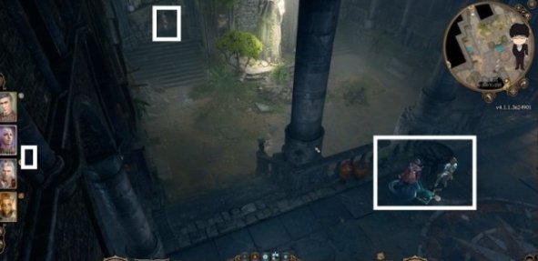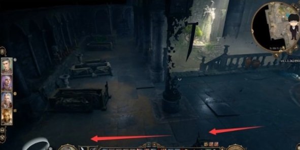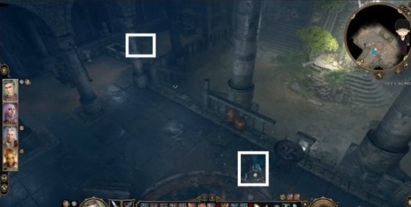 回到大厅,这里将四人分开,老基德推荐主角和洋基妹站中间上方亡灵位置,盖尔站左边(西边)亡灵位置,影心负责打开左前方过道的机关,站怪边上记得贴上去,有几率怪物起身先攻,移动时可以触发被动补刀