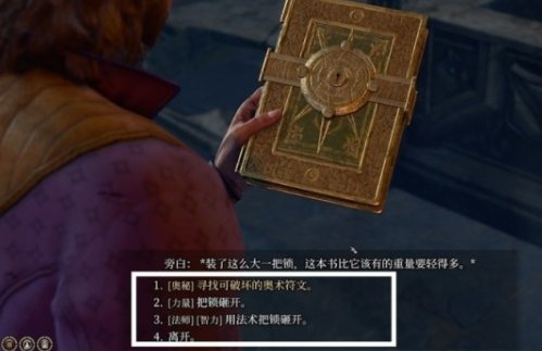 拿完后推荐法师盖尔上去摸书,选项上优势是奥秘,力量和智力。奥秘难度等级15,力量推荐洋基妹摸书,智力难度等级10