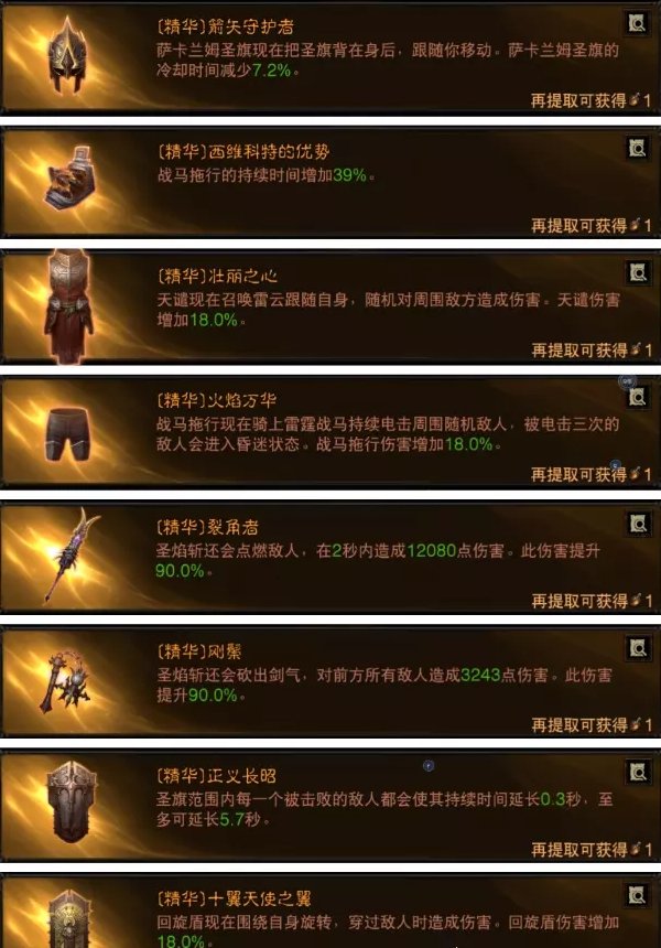 技能:战马拖行+萨卡蓝姆圣旗+天谴+回旋盾(普攻圣焰斩)