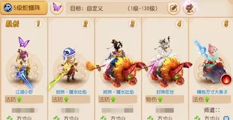 2、队伍构成:物法输出兼1封2辅的五个不同门派