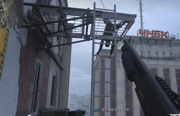 1、游戏开始走到电梯井爬上楼梯,爬上楼梯到屋顶后,