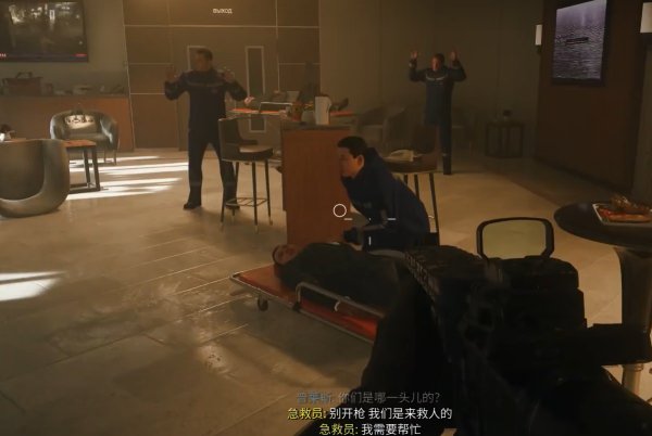 5、这里查看伤者的时候注意所有的人会掏枪,全部击毙就行。