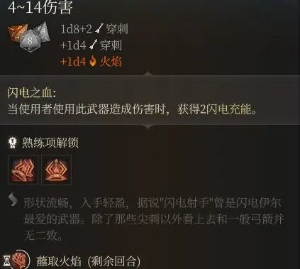 蘸取是个好东西,不仅不消耗动作,还能让你的武器附加一个额外的伤害。并且,由于在战斗中把物品从背包里拿出来是不消耗动作的,所以我们可以随身带一根蜡烛,那样就可以随时蘸取,前期附加一个1d4的火焰伤害还是很香的。