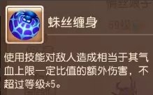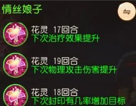 一个相对复杂的技能,情丝娘子首回合会召唤小花,小花存活时,每回合给娘子一个花瓣,小花的寿命最多只有4回合,花瓣数量会增加娘子的额外伤害,此伤害为无视防御的固定伤害,每1个花瓣增加固伤100点,最多400点,所以情丝娘子打击高防单位,潜力很大,有时伤害结果能超越北海龙子,也主要在于这4朵花瓣了