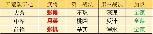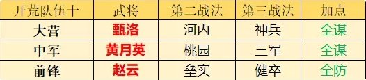 10、满红或近满红玩家建议用垒实桃园开,赵云补30点防御,转型以后节约战法,但开荒难度较高,低红或者白板建议还是老老实实用战必磐阵开,转型以后要换技能,相对来说浪费一点战法经验,但稳定性高