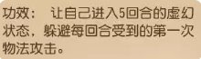 灵魂技能,菩提核心,进场附带5回合虚幻咒,进阶后附加天师符效果,大抵与老鼠精的避敌锋芒是相同的,只是持续回合数较为有限,中短期战斗中与避敌锋芒完全一致
