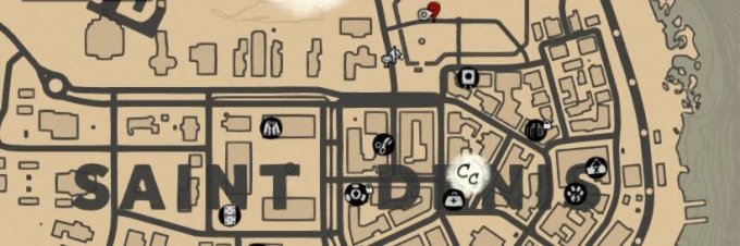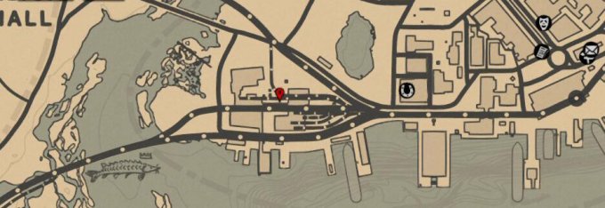 接下来需要第二张藏宝图,第二部分在圣丹尼斯码头,大概在图示的这个红标位置: