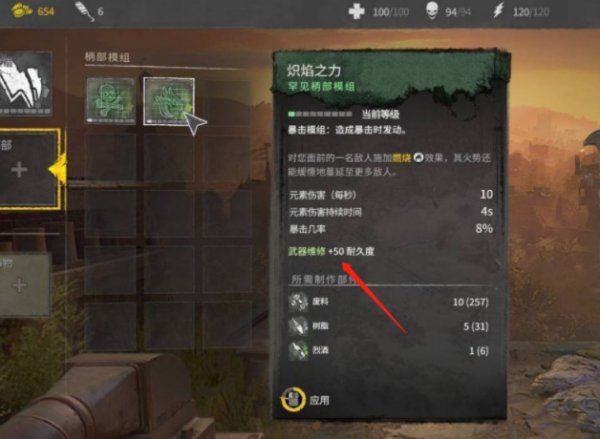 2.选择空的槽位,然后应用模组即可恢复武器耐久。如下图所示: