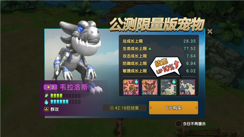 机暴韦拉洛斯作为公测限量版宠物,6元首冲即送,可谓是相当良心了!它能对敌方全体目标早上攻击伤害的同时能够回复生命值,而且有概率造成灼烧状态并持续3回合。帅气的外表,实战也强悍,不妨可以入手,带着它行走在尼斯大陆上,英姿飒爽,实在拉风!