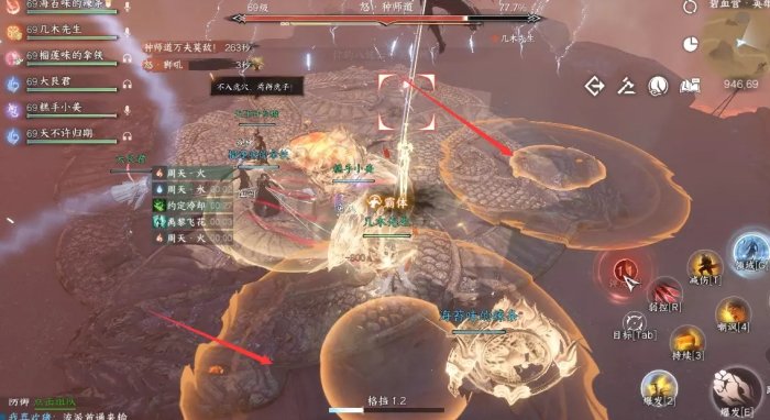 解决方案:铁衣开盾去挡,或者把BOSS拉到边缘再打。