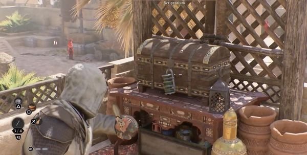 到这里后走左边的路口,沿着滕蔓爬上去即可看到一个代币箱子。