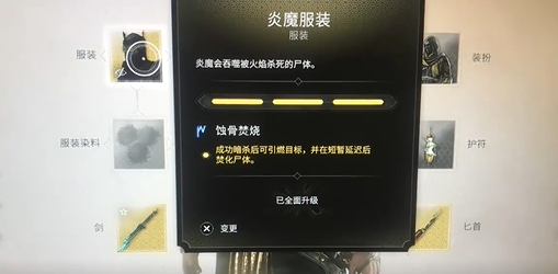 炎魔服装:成功暗杀后可引燃目标,并在短暂延迟后焚化尸体