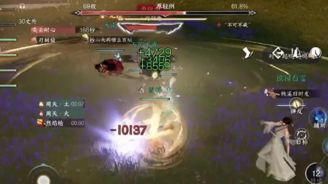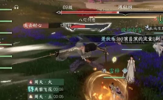 源轻纲以自身为中心,快速挥出两道圆形范围的剑气,对圆形范围内的玩家造成伤害,伤害不高,脆皮离远一点就可以。