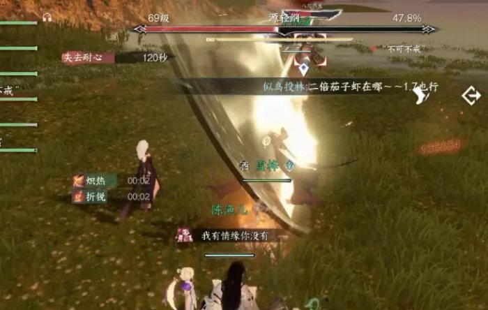 源轻纲向前方扇形区域挥出一道剑气,对区域内的玩家造成伤害,大家站在BOSS后面输出。