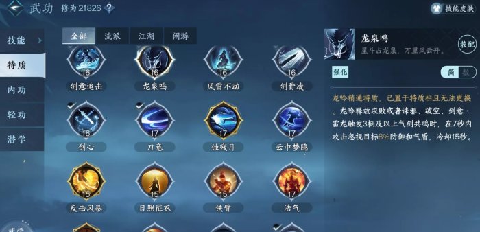 使用雷龙天翔后进行剑意追击,释放求败、破空以及诛邪四种方式可以触发龙泉鸣效果