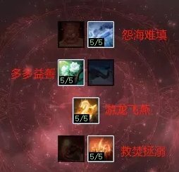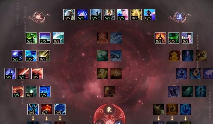 对于天枢点120点的双天赋魔来说,中间部分的技能选择,我们基本也是可固定的:怨海难填(增加怨气上限100点)、多多益善(盘、速、牛增加1个单位)、游龙飞燕(前3回合增加BB闪现几率)、救焚拯溺(倒地、隐身、被冰单位都可被盘、速、牛)、一路点下来就可以,不管你是选择的盘攻、盘震,或是速攻、速震、攻震都一样。
