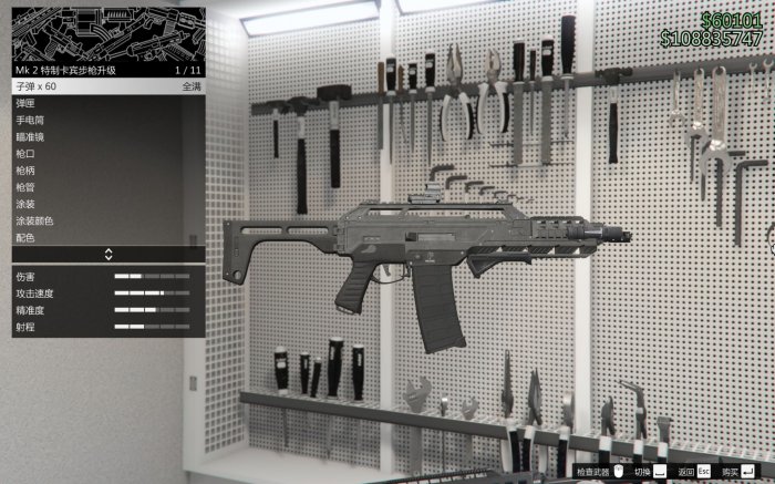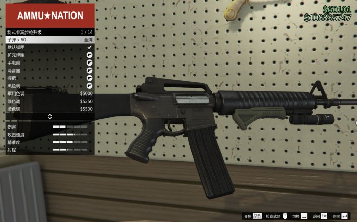1.MK2特制卡宾步枪,是作者本人将所有MK2武器解锁并配备了相同配件,在各种测试中独占鳌头的武器,特别是它点射与盲射的精准度,都是其他MK2武器无法与之媲美的
