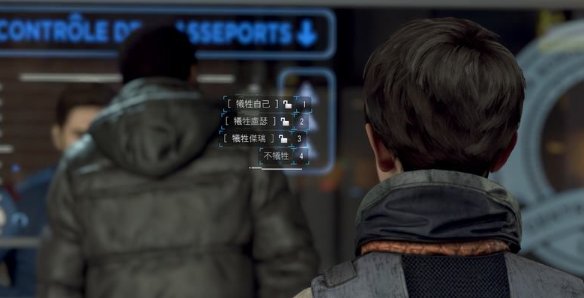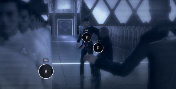 2、此时康纳前往模控公司转化仿生人。前方有警卫。预制选择先左后右踹击警卫的路线。再模仿警卫的声音进行楼层转移。