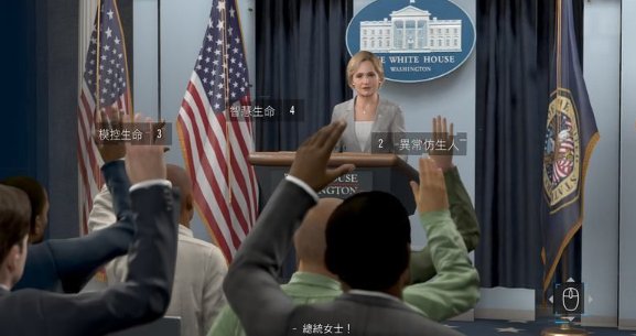 1、在国会的新闻发布会上,总统正在就仿生人问题进行讲话。