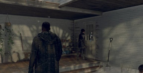 1、卡拉与卢瑟到达目的地后与屋主萝丝交谈,然后进屋。