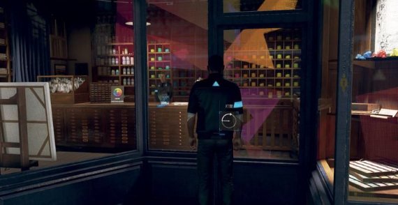 底特律变人第三章攻略 1、控制仿生人马库斯到颜料店领取包裹。