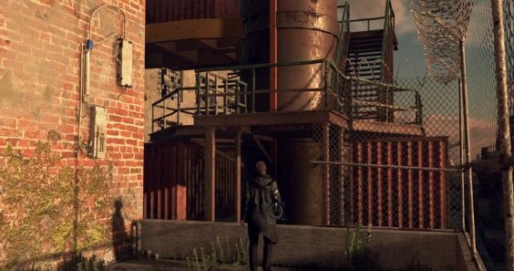 6、走到路尽头,借助垃圾桶上到屋顶,在图案的中上方。