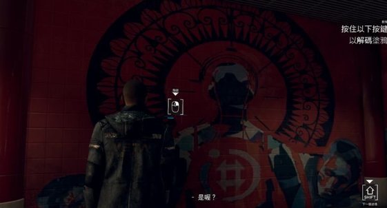 2、进入地铁站后找到胸口有#的壁画。并扫描