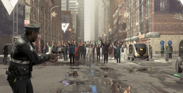 4、按提示键解放街边的仿生人进行游行示威,遇到警察叫停时,举起双手即可。