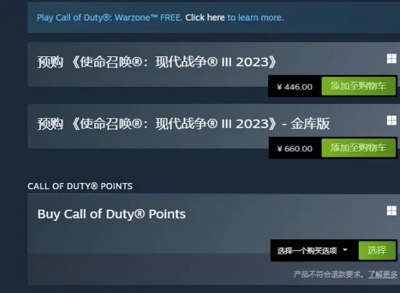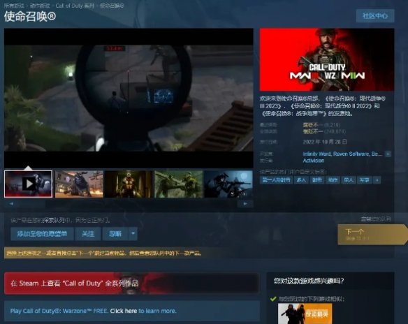 第一步:打开steam点击进入使命召唤20:现代战争3游戏详情页