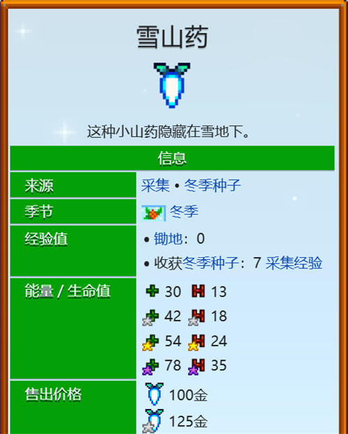 雪山药是一种极其有用的野菜,能够为你提供巨大的帮助,尤其是在工艺室进行冬季采集收集包的制作时。还可以将雪山药出售给商店,或者将其赠送给村民,从而增加自己的收入。为了获得雪山药,有两种不同的方法可供选择。一种是通过挖掘被雪覆盖的土地来寻找雪山药,另一种是在冬季种植冬季种子并等待长成。不论采取哪种方法,都需要时刻牢记冬季的限定时间。雪山药仅会在冬季出现,一旦春天来临,它们将会消失无踪。建议立即采取行动,去寻找属于你的雪山药吧。祝你在星露谷物语的游戏世界中玩得愉快!