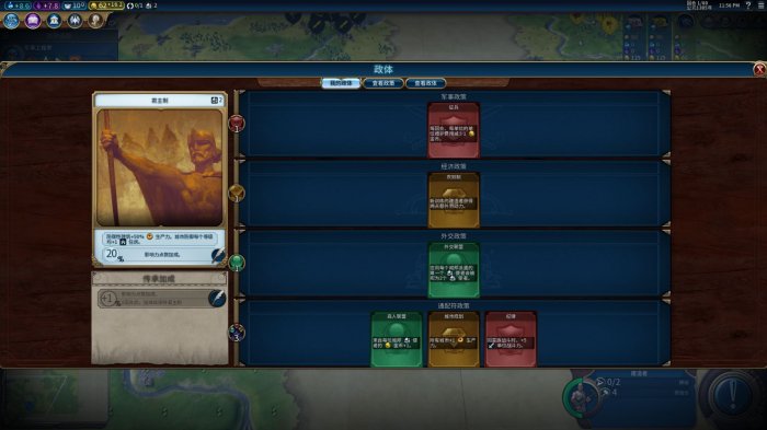 开局一定先选君主制,挂上外交联盟的政策卡,再做其他操作!其他政策随意,推荐常驻征兵和纪律卡,买工人的时候挂农奴卡。市政直冲翼骑兵,科技看心情。