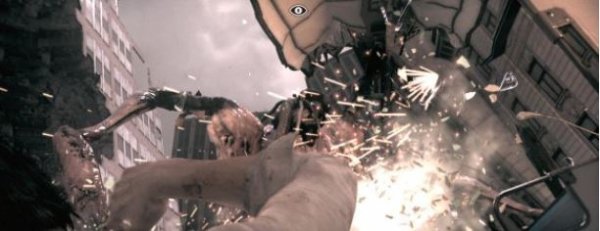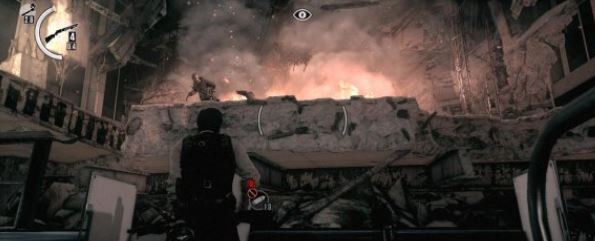 注意利用油桶点燃敌人,同时这个场景开始出现大量的带铁面具的敌人,尽量射击敌人的下半身