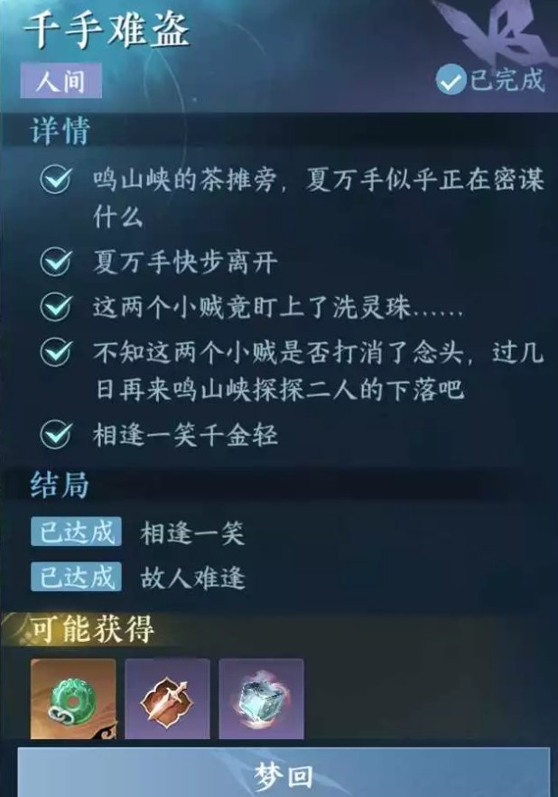 《逆水寒手游》仙居原人间任务千手难盗攻略