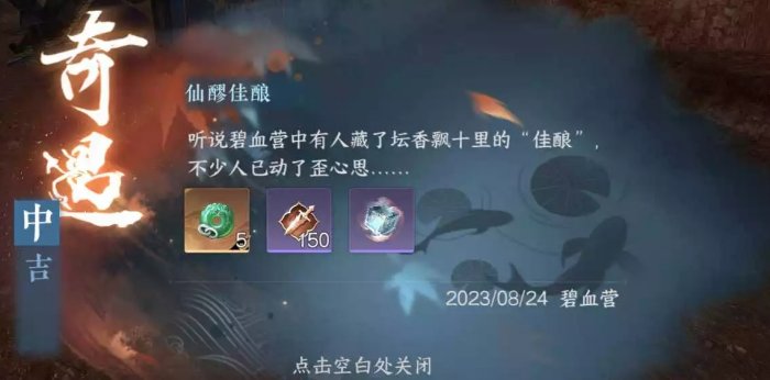 8点剧情点,5个绑玉和150点风云令 获得收藏图鉴「秘制美酒」