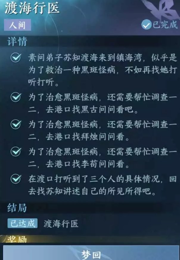 《逆水寒手游》东极海人间任务渡海行医攻略