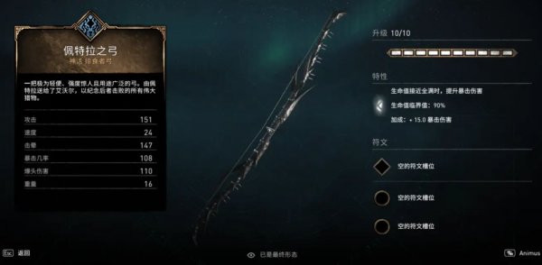 女猎人佩特拉的专属武器佩特拉之弓是一个非常特殊的武器。