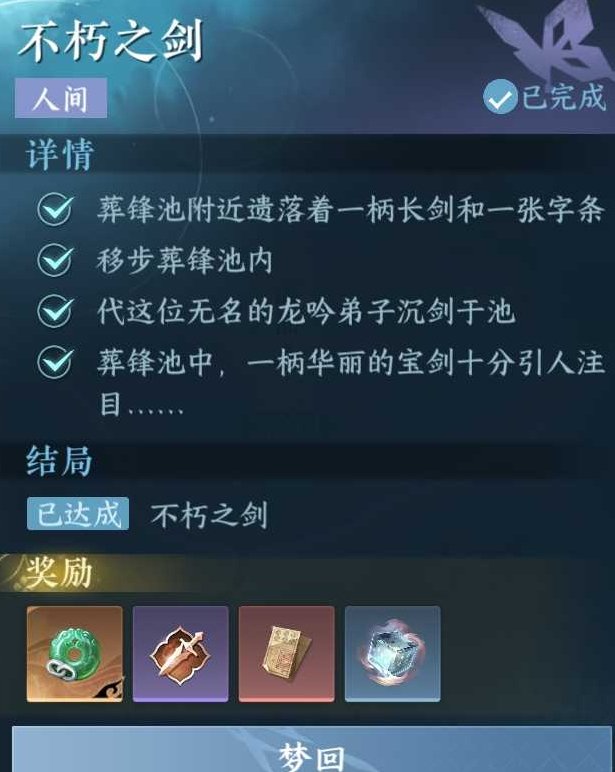 《逆水寒手游》东极海人间任务不朽之剑攻略