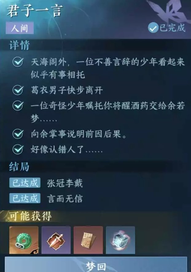 《逆水寒手游》东极海人间任务君子一言攻略