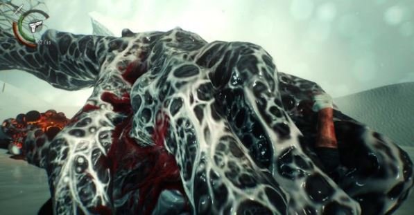 面对最终的BOSS麦拉,她变成了一个进击的巨人中的巨人。第一阶段,她只会用手拍着攻击,而且攻击完成时会僵硬一会儿,躲开后攻击她腹部闪着亮光的部位。打烂腹部后,会爬出许多小蜘蛛,虽然也会攻击你,但却是战斗中的福利。利用F的重踩就可以消灭它们,还可以同时踩死许多只,并且踩死他们还会给你送上弹药、医疗针和火药。