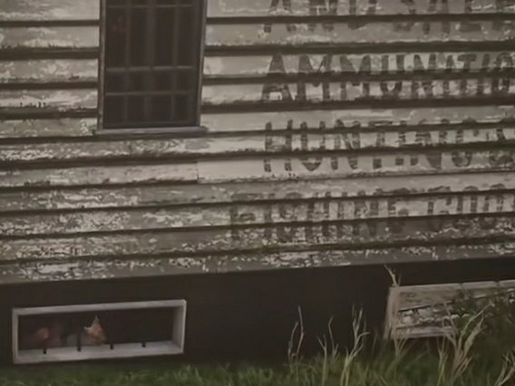 围着枪械铺绕一圈,能看到有人通过地窗求救,在侧面触发剧情,有一个少年被囚禁在这里。