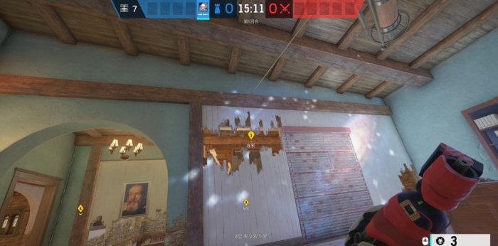 不建议开左侧的对墙洞,攻方可以在卧室架断天文台的队友转点及两点之间的队友转点。推荐开右侧一方面可以给卧室窗户压力,另一方可以分担浴室扩防的队友来自主卧枪线的压力。