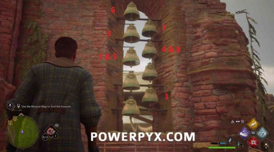 9、清理敌人之后,找到钟,按下图数字顺序使用普通攻击敲钟就可以解开谜题;