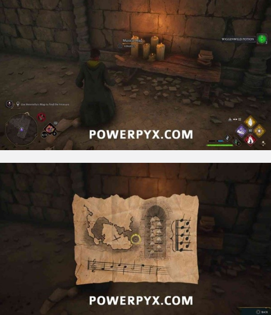 在亨利艾塔的藏身点中可以拿到藏宝图。注意在开始寻找之前,先完成以下几个作业,解锁对应咒语: